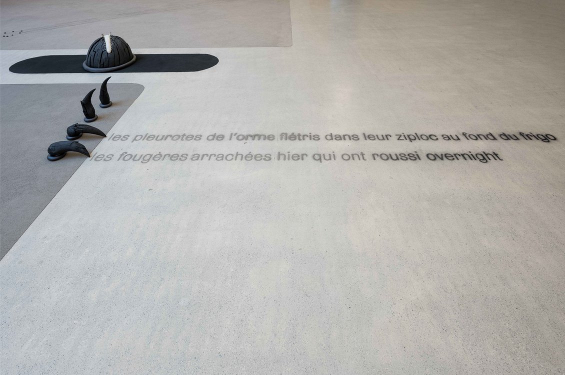 Maude Léonard-Contants Bildwelt speist sich aus Sprache, der Gestalt von Buchstaben, Worten und Satzfragmenten, und manifestiert sich in eigenwilligen, oft raumfüllenden Bodenarbeiten. Sprache ist selbst dann spürbar, wenn sich ihre Werke am Rande der Verständlichkeit bewegen – Léonard-Contant navigiert.
