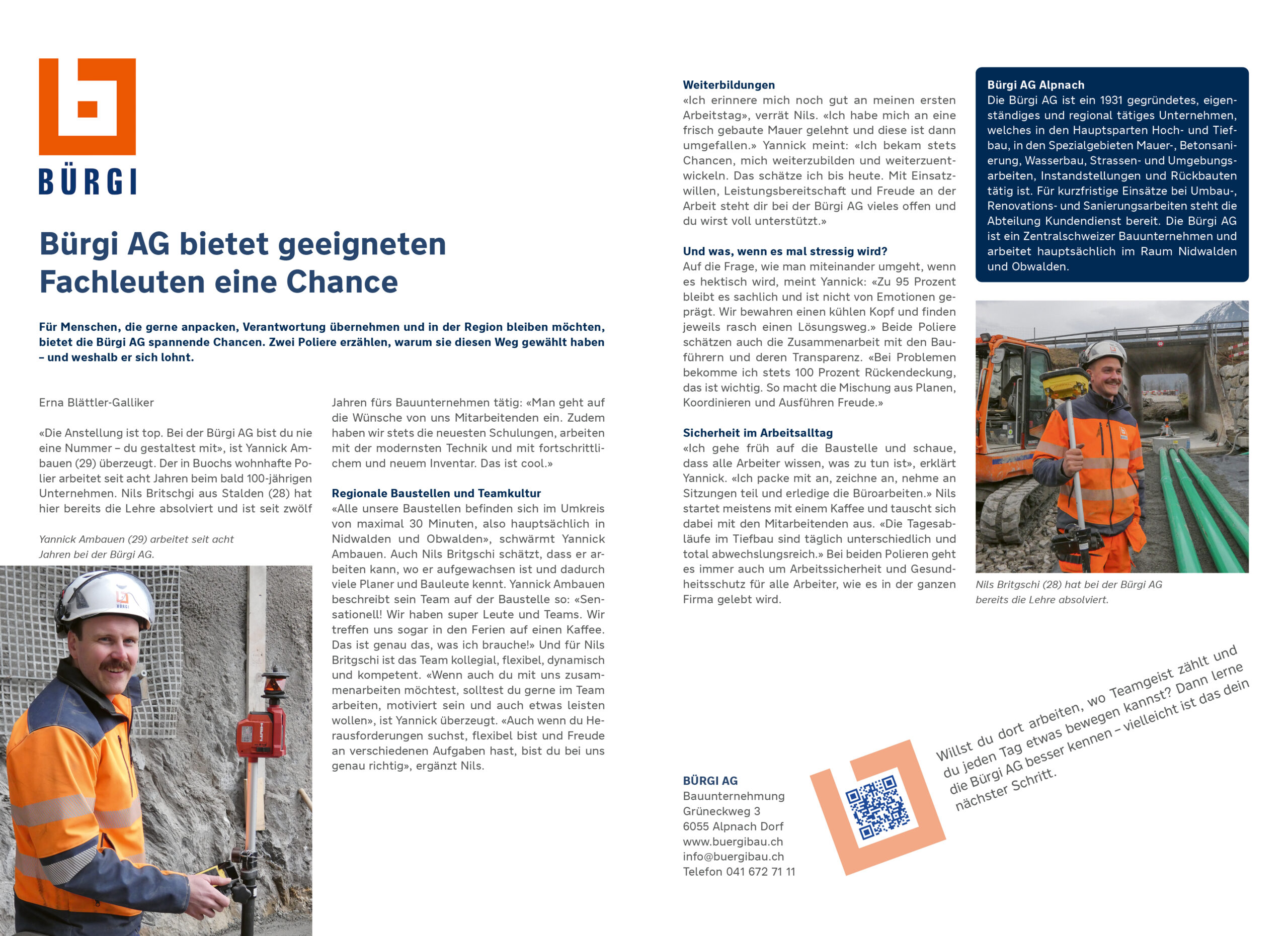 Bürgi AG bietet geeigneten Fachleuten eine Chance