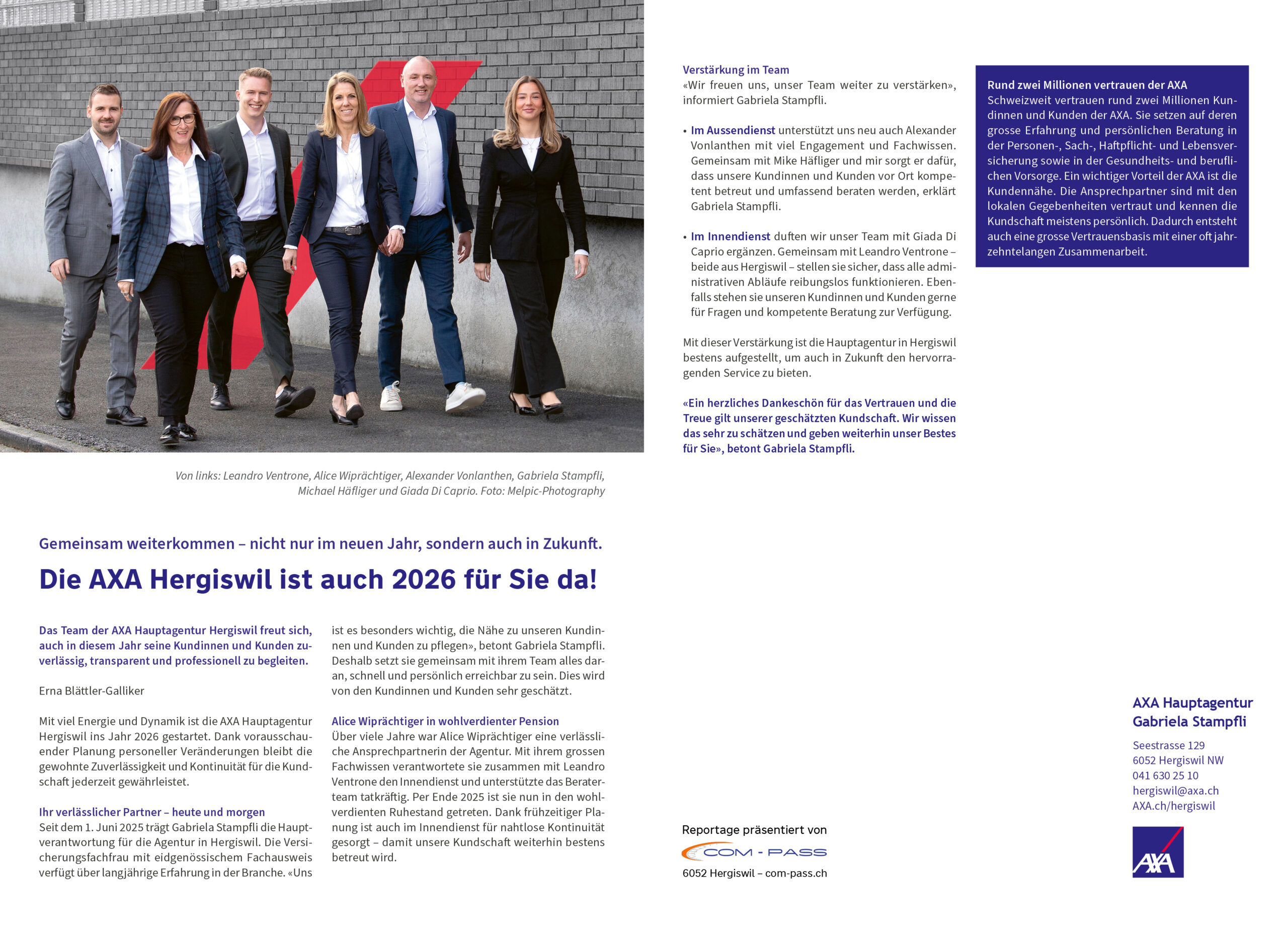 Die AXA Hergiswil ist auch 2026 für Sie da!