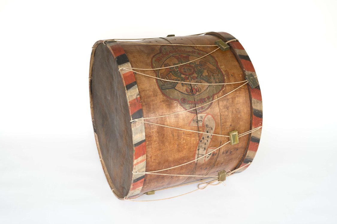 Die Trommel, ausgestellt im Winkelriedhaus, ist ein historisches Zeugnis, das belegt, dass die Musikgesellschaft Emmetten bereits im frühen 19. Jahrhundert existierte.