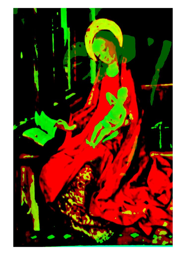 Seit ihrer Kindheit interessiert sich Annelies Štrba für das Madonnenthema und fotografiert seit Jahrzehnten Marienbildnisse in ihrer Umgebung und auf Reisen, um sie anschliessend einer kunstvollen Verwandlung zu unterziehen. Dabei bedient sich die Künstlerin des Computers als unentbehrliches «Zauberwerkzeug». Bei der Bearbeitung schwinden die Pixel, das Licht weicht die Konturen auf, die Farbe nimmt überhand. Das freudvolle Experimentieren mit Verfremdungen, Überlagerungen und ungewöhnlichen Farbkombinationen entwickelt eine Magie, einen Zauber, dem sich der Betrachter nur schwer entziehen kann. Mittels moderner technischer Hilfsmittel gelingt es der Künstlerin, die Madonnen gleichsam in die Gegenwart zu holen. Obschon Štrbas Marienbilder losgelöst von ihrem eigentlichen religiösen Kontext erscheinen, büssen sie nichts von ihrer übersinnlichen Aura ein. Im Gegenteil: Durch die Verwandlung wird diese in neuer, aussergewöhnlicher Weise sichtbar gemacht.