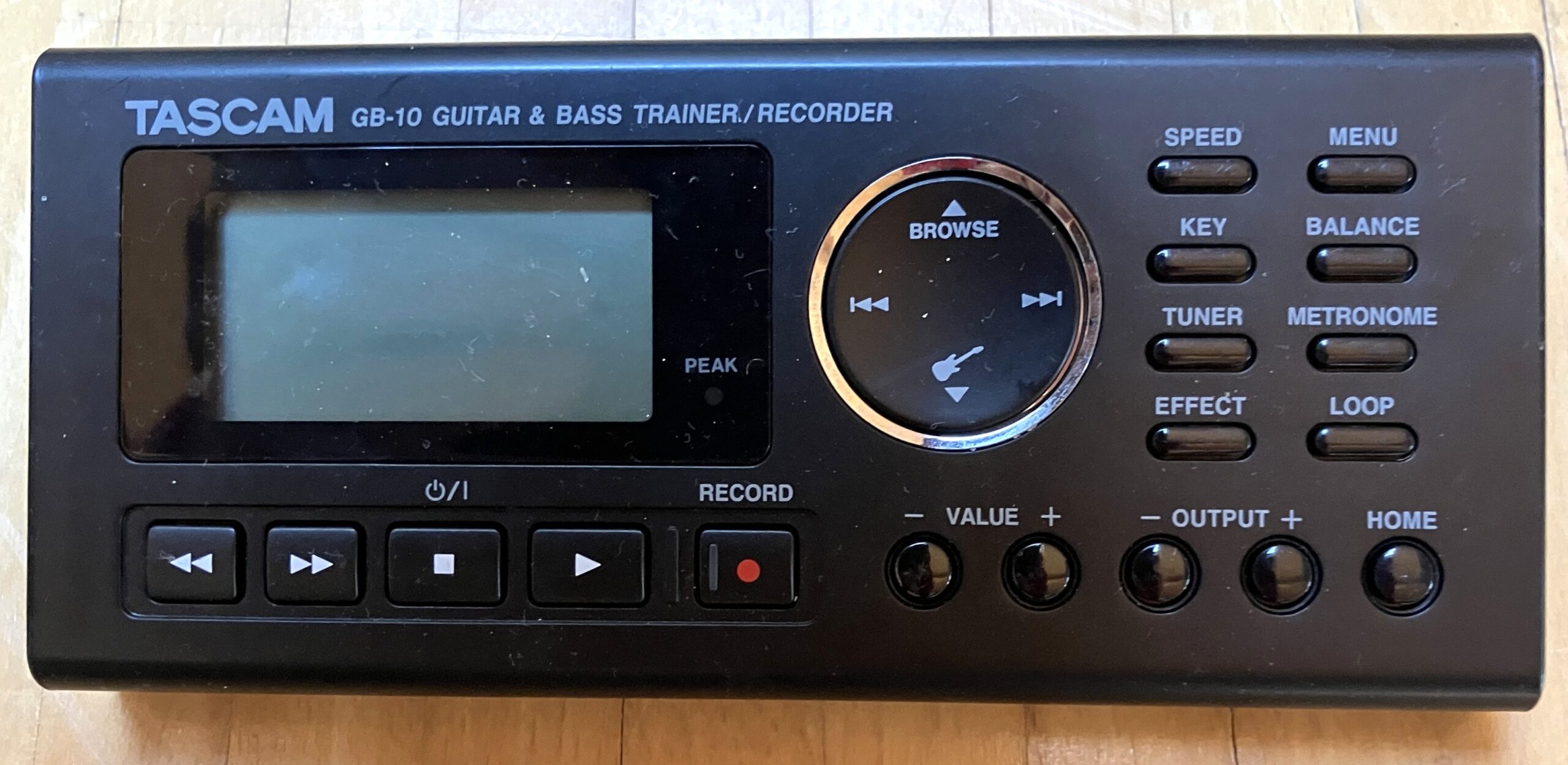 Unser Grosskind verabschiedet sich vom Schlagzeug mit Zubehör und wendet sich dem Gesang zu. So geben wir das dies gerne weiter: Tascam GB 10 Guitar & Bass Trainer und dazu die Lautsprecher-Boxe JOYO. Wenig gebraucht.