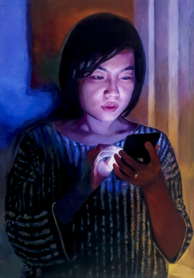 Silvia Gertschs Handy Girls, ihre 2020 entstandene Serie von Porträts junger Frauen, die versunken in ihre Handys schauen, begegnen lichtumfluteten, in sich ruhenden Heiligen. Romuald Etters Petits Cauchemars, mit gestischem Pinselstrich gemalte innere Nachtlandschaften, treffen auf kleinformatige, expressive Ölskizzen hinter Glas von Robert Zünd (1827 – 1909). Esther Wicki-Schallbergers Objekte und Gemälde stehen wie die Hinterglasmalereien von Franz Amstad (1892 – 1961) in der Tradition der religiösen Volkskunst. Flavio Micheli ist mit grossformatigen abstrakten Malereien hinter Opalglas vertreten.