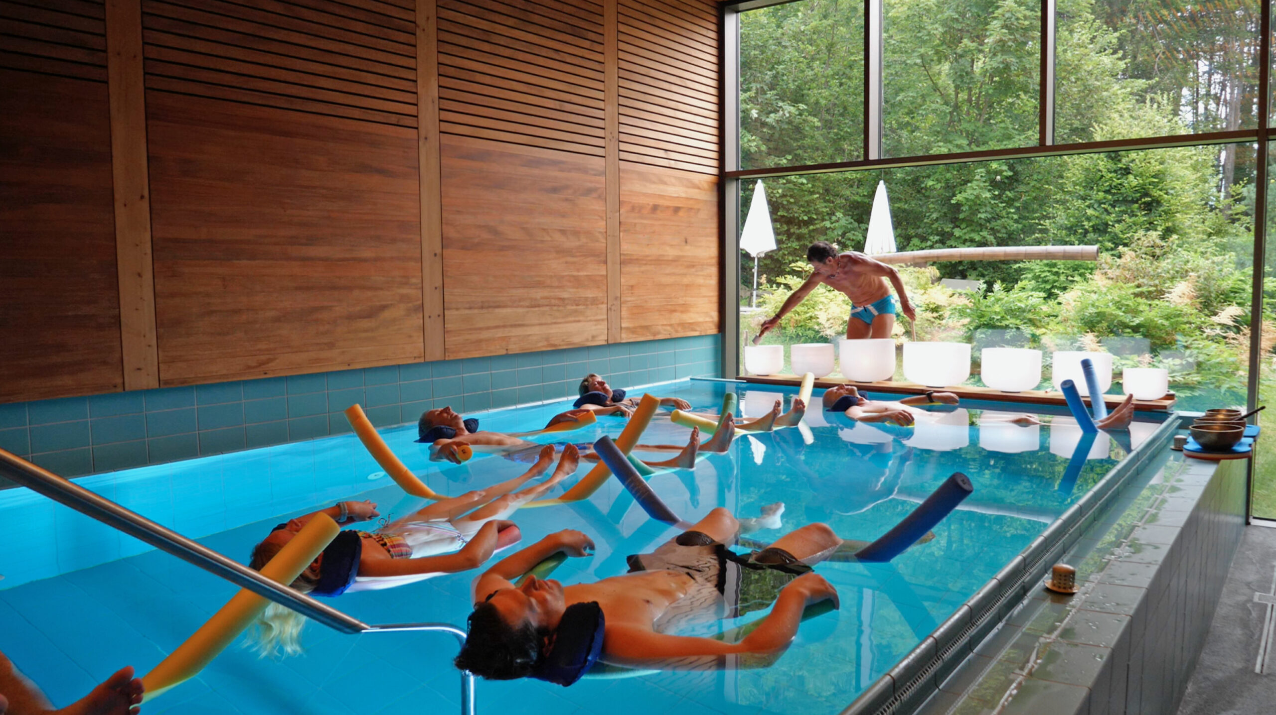Erleben Sie Tiefenentspannung mit Klangschalen. Ruedi Omlin nimmt Sie auch diesen Winter wieder mit auf eine musikalische Reise der Entspannung. Sie liegen völlig schwerelos im Solebad und lauschen den Klängen der verschiedenen Klangschalen und anderen spannenden Instrumenten.