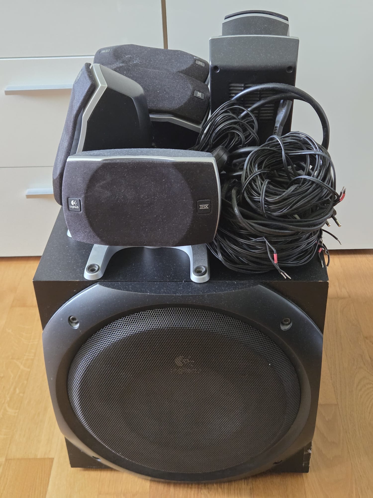 Komplette Logitech Z-5500 5.1 Soundanlage (5 Lautsprecher und 1 Subwoofer).
