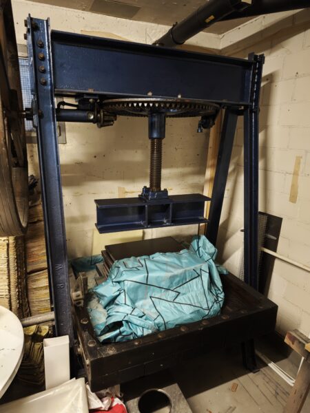 Die Presse kann vollständig zerlegt werden, alles ist geschraubt. Demontage und Abholung durch den Käufer.