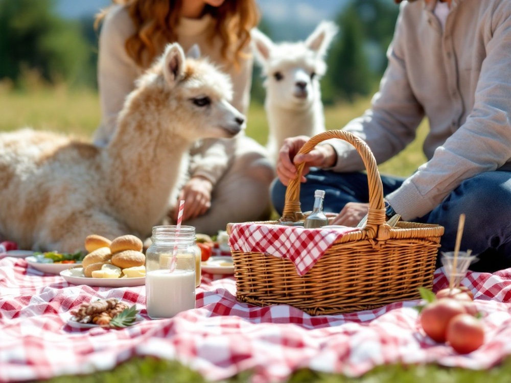 Alpaka-Picknick: Ein Naturerlebnis der besonderen Art, auch für Familien mit Kindern oder Paare als romantisches Date geeignet.