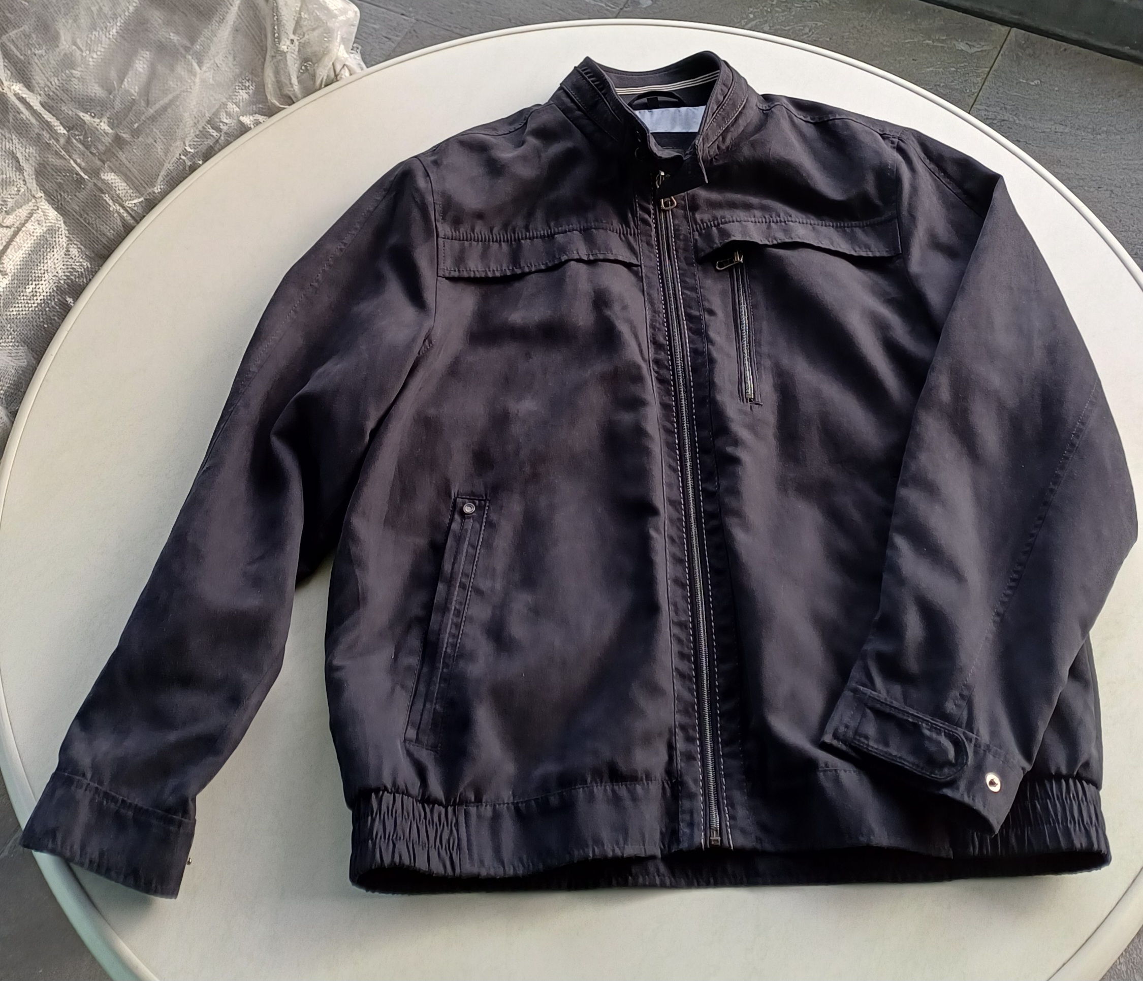 Herren-Blouson, dunkelbau, Grösse L/XL / 8tung: Die Jacke ist ein wenig glänzend. Aufgrund des Stoffes täuscht das Foto also ein wenig. Die Jacke ist nicht verwaschen!