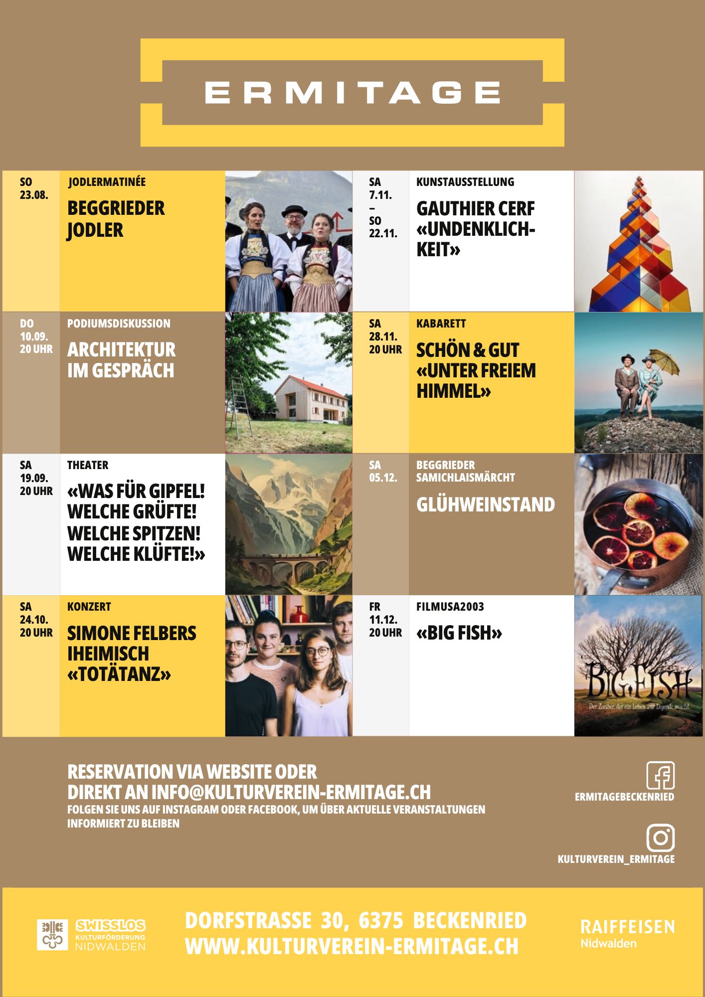 Mehr Infos und Reservation unter www.kulturverein-ermitage.ch