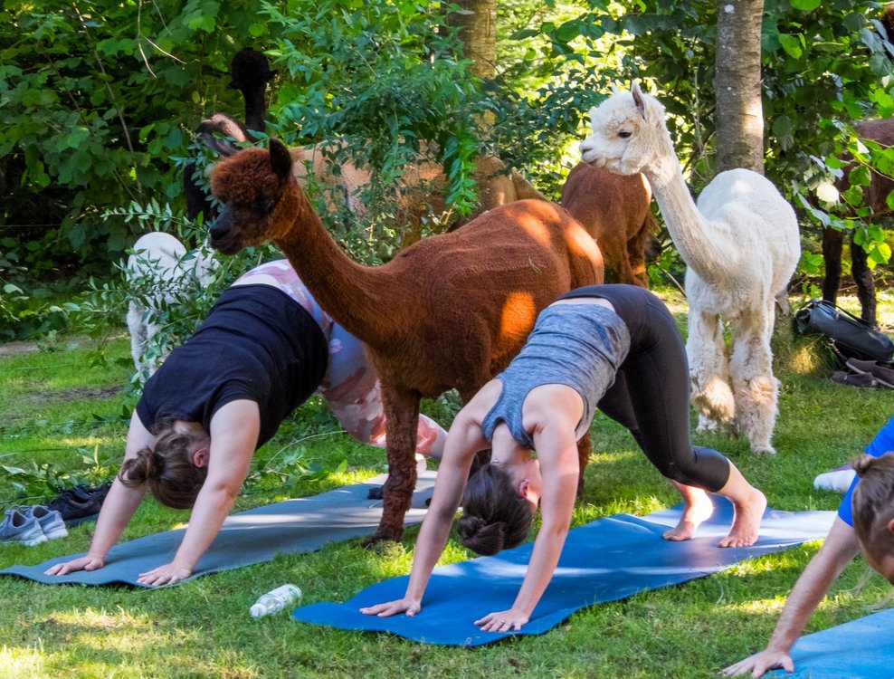 Unsere YogaLehrer*innen sind aus der Region, sehr gut ausgebildet und erfahren. Das Alpaka Yoga ist ein besonderes Yoga das sich auf die Natur, das Tier, Dich, die Ruhe, Konzentration auf Deinen Körper und die Entspannung konzentriert.